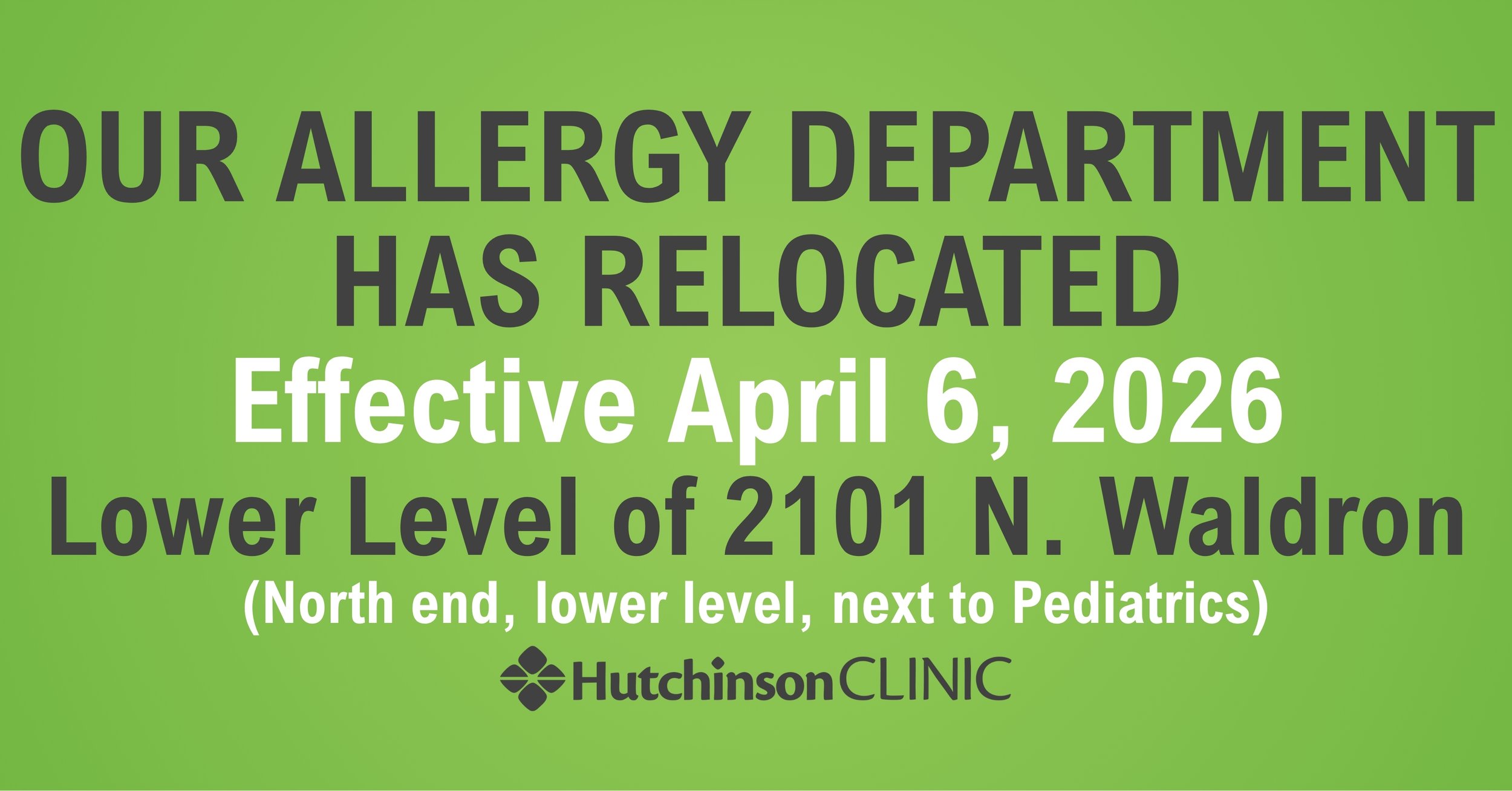 ALLERGY DEPARTMENT IS RELOCATING TO 2101 N WALDRON